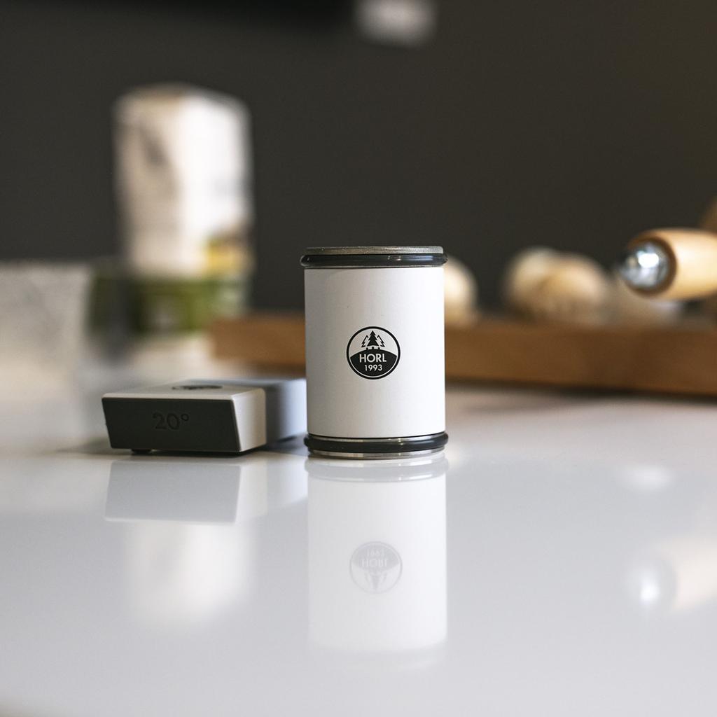 Die Edelstahl Abziehscheibe glättet nach dem Schleifvorgang die Schneide und entfernt den Grat bzw. restliche Materialpartikel mit Hilfe der integrierten Rillen. Hierfür genügen bereits wenigen Bewegungen. Die Schleifscheiben des HORL® 2 Cruise sind nicht wechselbar.