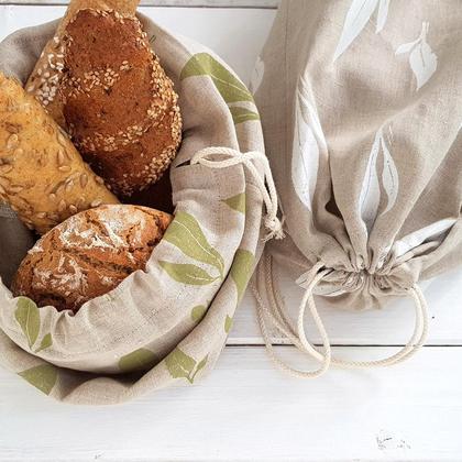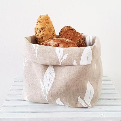 --Ein handbedruckter Brotbeutel-- aus Mühlviertler Leinen. Er ist Dank seiner konservierenden Eigenschaften die beste und bewährteste Aufbewahrunsmöglichkeit für Brot und Gebäck! Leinen ist von Natur aus atmungsaktiv, luftregulierend und bakterienhemmend. Sein robustes Gewebe ist reißfest, antistatisch, flusenarm und schmutzabweisend. Es neutralisiert sogar Gerüche! Brot bleibt daher lange frisch. Es fängt weder an zu schwitzen noch zu schimmeln. Mit dem Zugband aus Baumwolle kann man den Beutel schnell öffnen, gut verschließen und aufhängen. Der Brotbeutel lässt sich auch wunderbar als Brotkörbchen verwenden, da er eine quadratische Bodenfläche hat! Einfach in der Hälfte nach innen bis zum Boden falten und den oberen Rand ringsherum wieder nach außen stülpen. Dieses nachhaltige Naturprodukt bleibt ein langlebiger, treuer Begleiter!