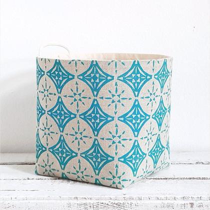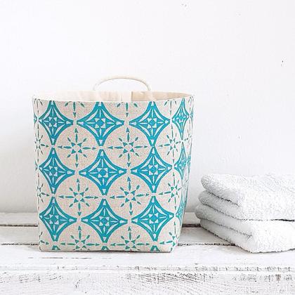 Dieser feine, --handbedruckte Stoffkorb-- aus Mühlviertler Leinen ist in nahezu jedem Winkel der Wohnung einsetzbar: für Gebäck am Frühstückstisch, zur Aufbewahrung von Servietten oder Gästehandtüchern, im Badezimmer, in der Garderobe für Mützen und Handschuhe, in der Küche oder im Kinderzimmer. Kleinkram verschwindet schnell im Stoffkorb: er sorgt für Ordnung und sieht dabei sehr hübsch aus! Mit dem eingenähten Seil kann man ihn auch an einen Haken an die Wand, oder an ein Geländer hängen.