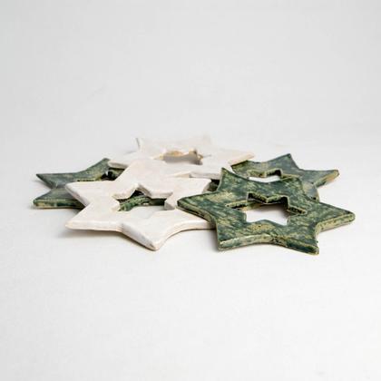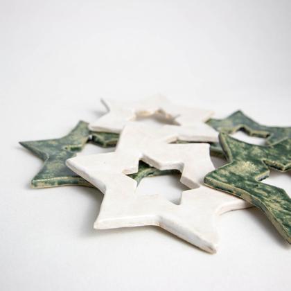Dieser handgemachte Keramikstern wurde aus weißem Ton hergestellt.
