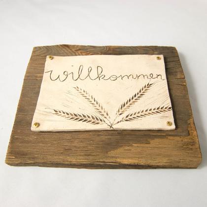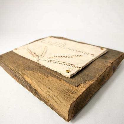 Altholz-Keramik Willkommens-Schild