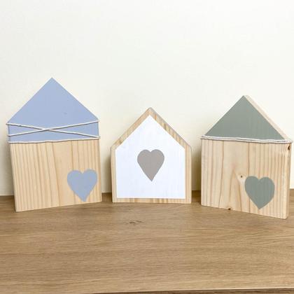 Das Häuschen wurde händisch zugeschnitten und mit blau-grauer Farbe bemalt. Zur weiteren Dekoration wurde es mit einer weißen Kordel verziert.