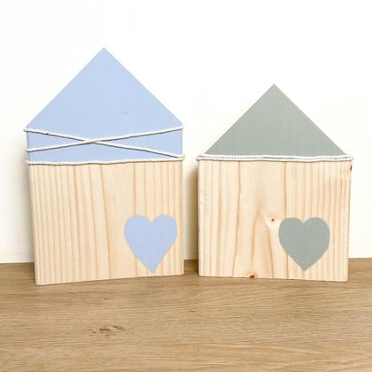 Das Häuschen wurde händisch zugeschnitten und mit olivgrüner Farbe bemalt. Zur weiteren Dekoration wurde es mit einer weißen Kordel verziert.