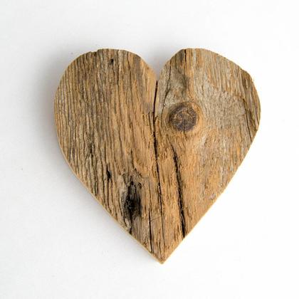 Dieses kleine Herz ist aus einer Altholz-Schindel gefertigt.