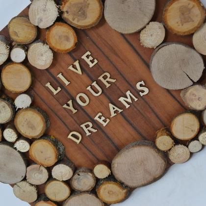 Handgefertigtes Holz Wandbild aus österreichischem Holz mit Schriftzug "Dreams".