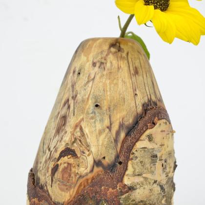 Holzvase mit Glaseinsatz aus steirischem Birkenholz.