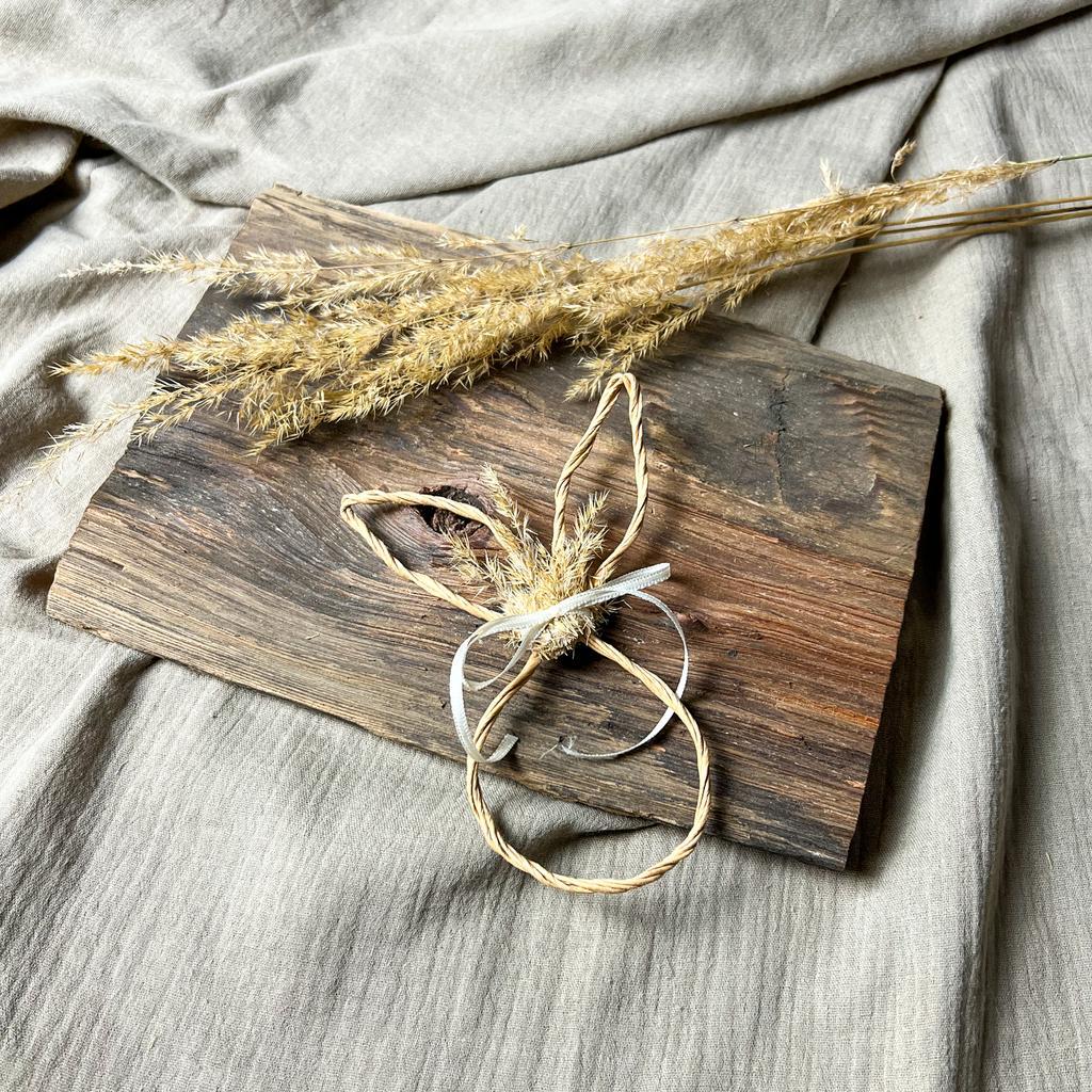 Der Anhänger besteht aus einem filigranen Häschen aus Papierdraht, das mit getrockneten Gräsern und einer kleinen Schleife verziert ist. Er ist leicht und einfach an Osternestern, Zweigen oder anderen dekorativen Elementen aufzuhängen. Die hübschen Farben und das niedliche Design machen ihn zu einem wunderbaren Geschenk für Kinder und Erwachsene gleichermaßen.