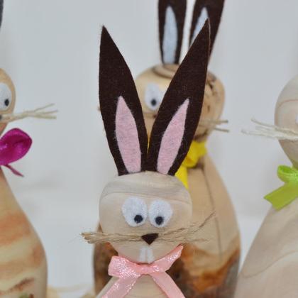 Schöne Osterdeko - Osterhase aus Holz. Handgefertigt aus gewünschtem Holz mit Filzohren und Stoffschleife.