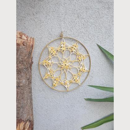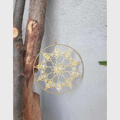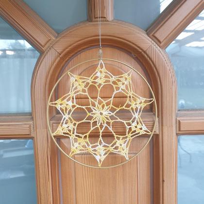 Handgefertigte Wanddeko /Türkranz mit gehäkeltem Weihnachtsstern in einem 20cm Metallreifen. Bestückt mit natürlicher Citrinperle