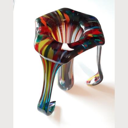 Im ersten Arbeitsgang werden die bunten Farbgläser zugeschnitten und zu einem kompakten Block verschmolzen. Die Form der Vase wird im zweiten Brennvorgang fixiert. Speziell der zweite Brennvorgang kann bis zu 18 Stunden dauern.