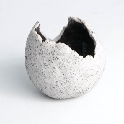 Diese handgemachte Windlicht-Kugel wurde aus Ton in Steinoptik hergestellt.