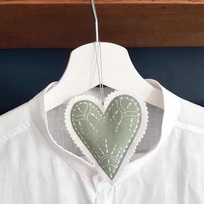 Wunderbar für Kleiderschrank oder Kommode als Mottenschutz - mit der eingenähten Schlaufe kann man sie auch in den Schrank oder an einen Kleiderhaken hängen. Der wohltuende Duft der Lavendelblüten verbreitet eine beruhigende Wirkung: gerne werden die Stoffherzen daher in stressigen Zeiten auch auf den Nachttisch, oder sogar unter das Kopfkissen gelegt, um einen guten Schlaf herbeizuführen. Durch leichtes Kneten lässt sich der Duft auffrischen.