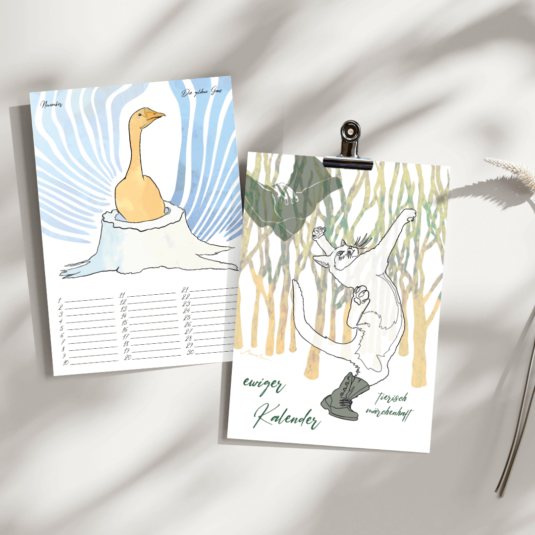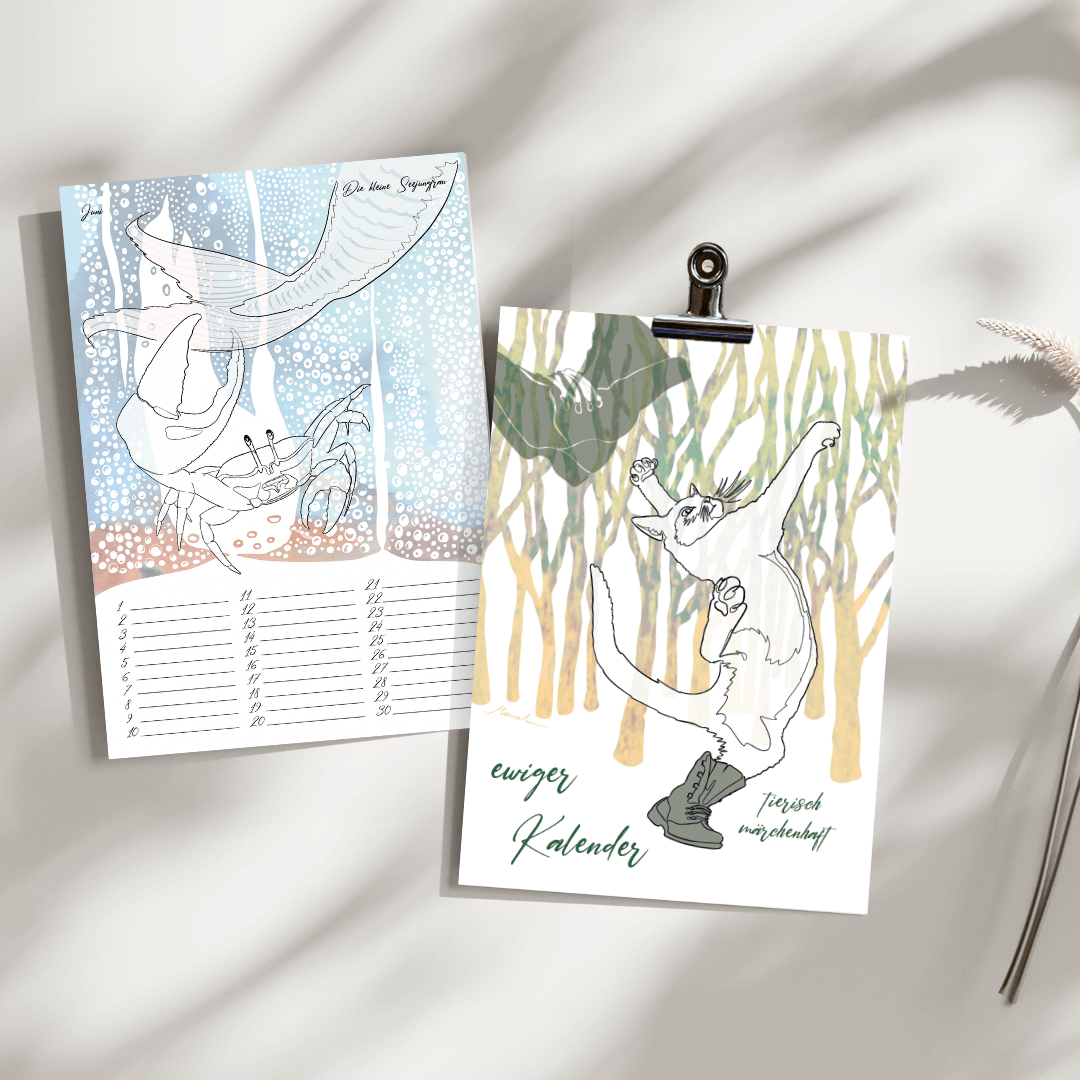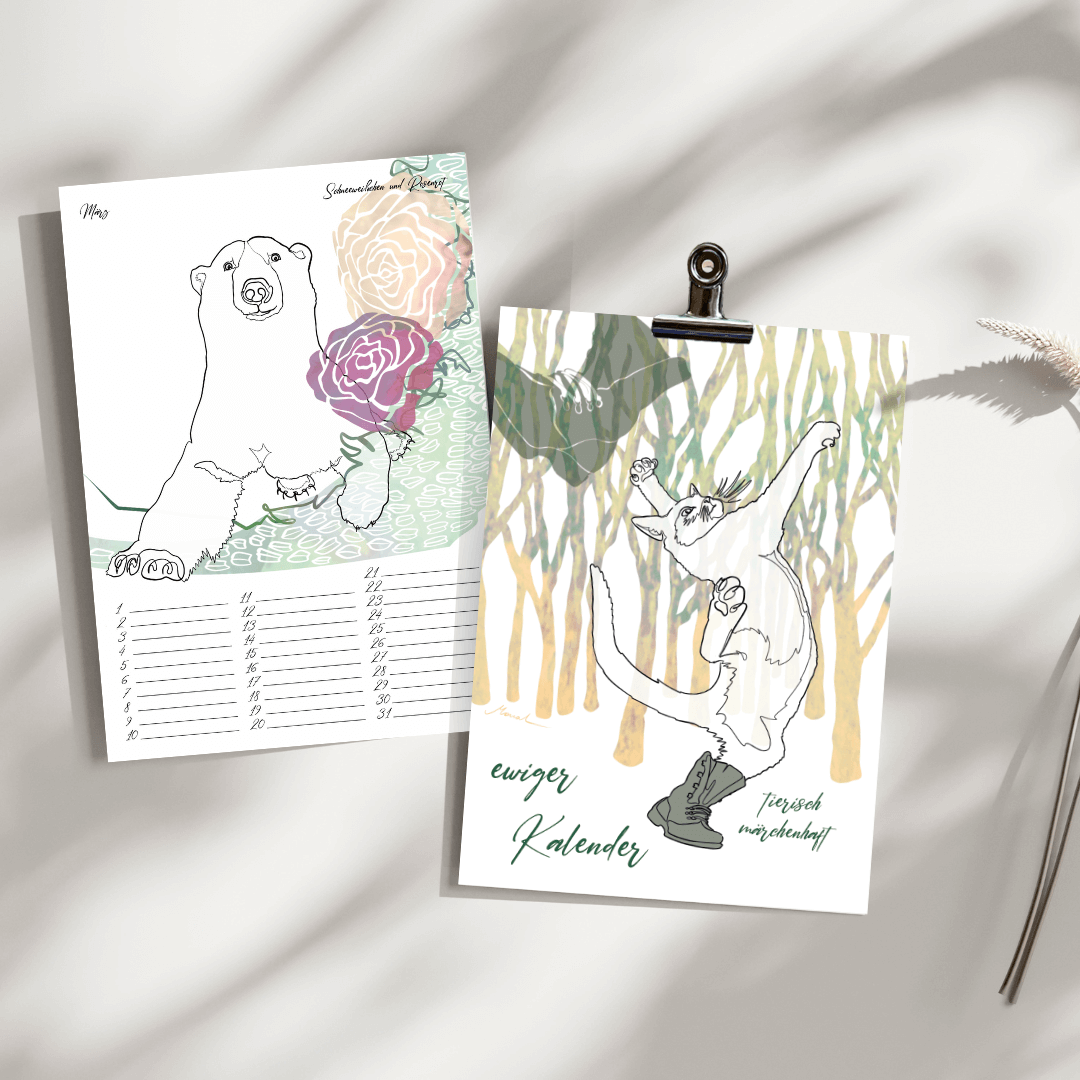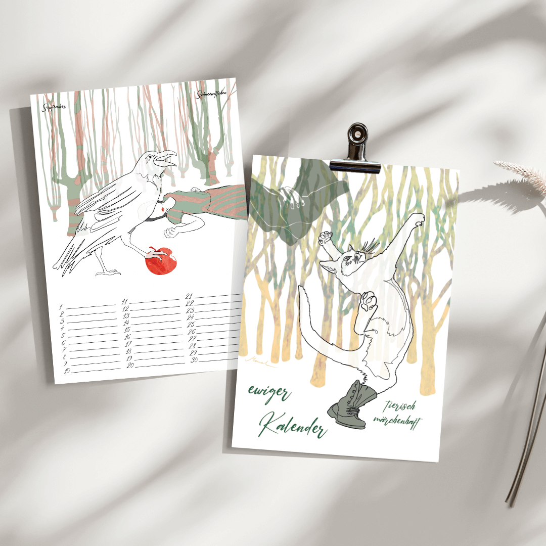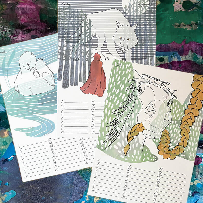 Märchen einmal ganz anders. Abseits vom Treiben um Prinzessinnen und Helden, widme ich diesen Kalender unseren tierischen Freunden und mache sie zum Star ihrer Geschichte. Monat für Monat wartet eine meiner charakteristischen Einlinien-Zeichnungen auf dich.