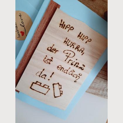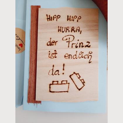 Karte zur Geburt, Legostein, Holz, Herzenswerk