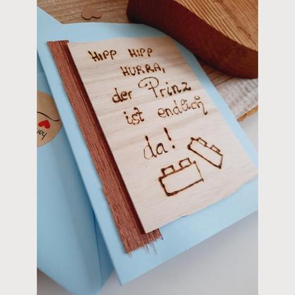 KARTE ZUR GEBURT! Die Karte ist aus hellblauem Papier und ca. 10,5 x 14,5 cm groß. Ein wunderbarer Spruch zur Geburt eines Buben! Er wurde von mir persönlich mit einem Brennkolben auf Holz geschrieben. Der zwei Legosteine passen perfekt zu einem Burschen! Ein wunderschönes Holzfurnier ziert die Karte auf der Seite. Ein passend zur Karte ist natürlich mit dabei!