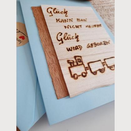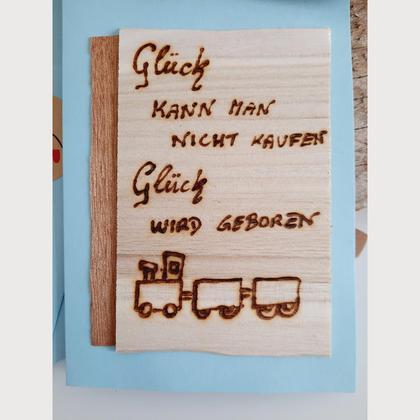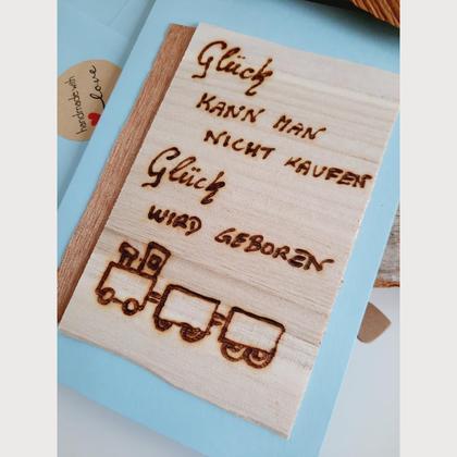 Karte zur Geburt, Zug, Holz, Herzenswerk