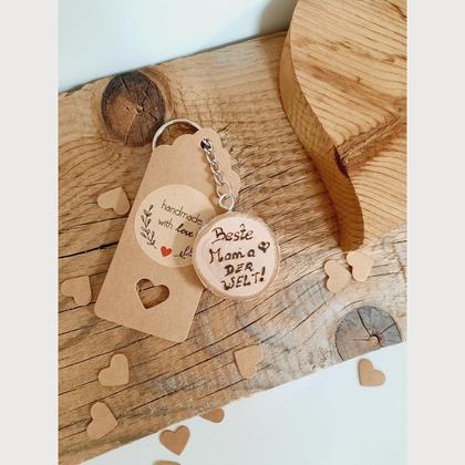 Wunderbares Geschenk für jede Mama Der Schlüsselanhänger ist aus Birkenscheibe und ca 3,5cm im Durchmesser. Jeder sieht etwas anders aus! BESTE MAMA DER WELT Besser kann man es nicht sagen! Passt zu jedem Anlass! Oder einfach so!