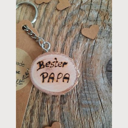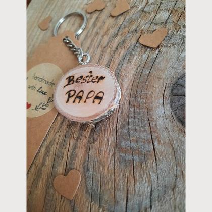 Wunderbares Geschenk zum Vatertag! Der Schlüsselanhänger ist aus Birkenscheibe und ca 3,5cm im Durchmesser. BESTER PAPA! Besser kann man es nicht sagen zum Vatertag!