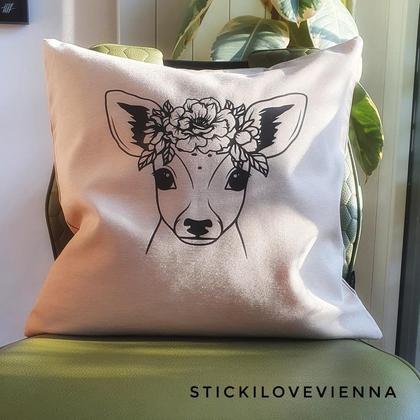 --Kissenhülle Kitz beige-- Diese wunderhübsche Kissenhülle kann auch Dein zu Hause verschönern. Man kann sie auch toll weiter verschenken! Die Kissenhülle wurde fertig zugekauft. Der Aufdruck wurde von mir erstellt. Der süße Kitz Kopf wurde mir schwarzer Flex Folie von mir erstellt und aufgebracht. Du bekommst hier nur die Kissenhülle ohne Inlay. Die Kissenhülle ist 40x 40 cm groß und wird mit einem Reißverschluss verschlossen. Sie ist aus 100% Baumwolle. --Die Kissenhülle ist bereits fertig und kann sofort nach Zahlungseingang versendet werden.--