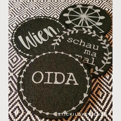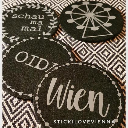 --Untersetzer Set Riesenrad-- Oida, wer kennts nicht? Personalisierte Wien Untersetzer für Dein zu Hause oder Deine beste Freundin? Die Untersetzer sind 10 cm und das Design kommt von mir. Du bekommst hier 4 Stück Untersetzer-- mit den Schriftzügen --Wien-- --OIDA-- --schau ma mal-- und dem --Riesenrad-- --Die Untersetzer sind bereits fertig und können sofort nach Zahlungseingang versendet werden!--