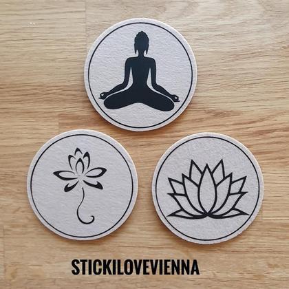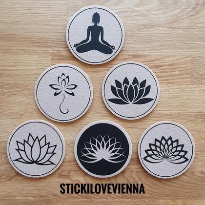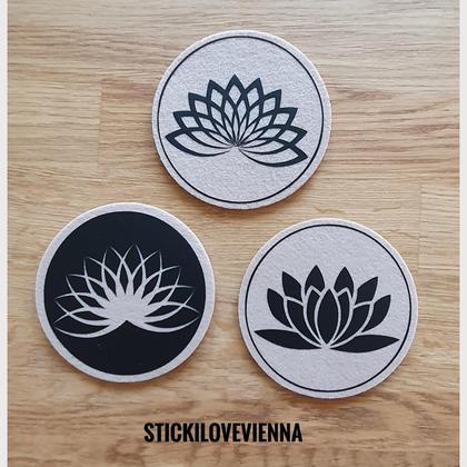 --Untersetzer Set Lotusblüte schwarz-- Du suchst schöne handgemachte Untersetzer für Dein zu Hause, oder bist auf der Suche nach einer besonderen Geschenksidee für Deine Lieben? Meine Untersetzer werden Dein zu Hause noch gemütlicher machen, und es gibt keine lästigen Flecken mehr am Tisch! Die dunkelgrauen Untersetzer sind 10 cm im Durchmesser, ca 5 mm dick und wurden mit wschwarzer Flexfolie von mir persönlich designt und beplottet. Du bekommst hier das Set --Lotusblüte-- mit insgesamt 6 Stück Untersetzer. Die Untersetzer sind bereits fertig und können sofort nach Zahlungseingang versendet werden!