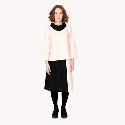 Fair Fashion – Made by Yourself In dieser Box findest Du alles was Du benötigst um mit einfachen Mitteln ein Kleidungsstück aus hochwertigen, nachhaltig produzierten Materialien zu fertigen. Ob ‚klassisch‘ manuell oder lieber mit Nähmaschine, ob Anfänger*in oder bereits Fortgeschrittene*r… mit einem vereinfachten, unterhaltsamen Zugang zum Handwerk leiten wir Dich Schritt für Schritt zum fertigen Stück! Im DIY Fashion Kit findest Du: - zugeschnitte Stoffteile (Bio-Baumwolle, GOTS-zertifiziert) - 4 Spulen Nähgarn (Bio-Baumwolle, GOTS-zertifiziert) - rotes Band (als optionales Gürtelband oder für individuelle Nähapplikationen) - Anleitung und Infomaterial (für Anfänger*innen und Fortgeschrittene) auf Deutsch - kleine Origami-Kuvertschachtel mit Stecknadeln, Nähnadel, Sicherheitsnadel und Bio-Nähetikett ‚MADE BY MYSELF‘ Material und Pflegehinweis Popeline aus 100% reiner Biobaumwolle aus kontrolliert biologischem Anbau (kbA) ist durch seine Feinheit wunderbar leicht und vielseitig. Besonders für Anfänger ist dieser Stoff geeignet. Waschen bei 30°