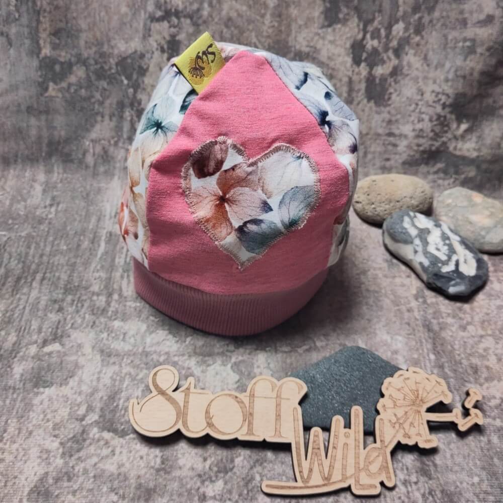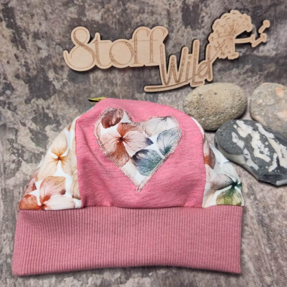 Bündchenhaube / Sommerbeanie mit Herz-Applikation