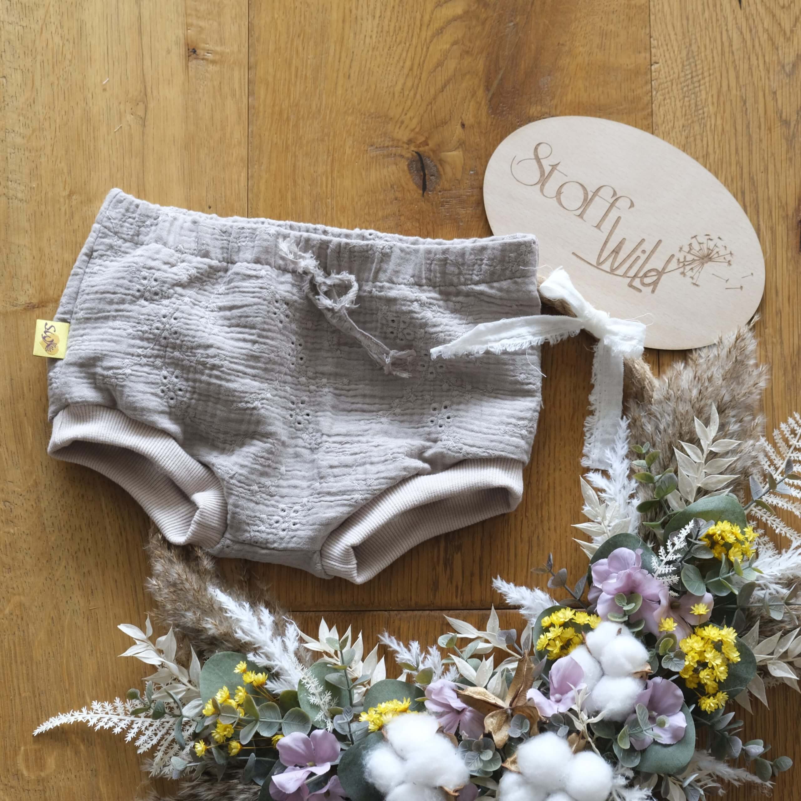 Tolle Bummie aus Musselin - perfekt für heiße Sommertage oder Strandabenteuer! Das Bauchgummi sorgt für guten Sitz und ein Bündchen bei den Beinabschlüssen garantiert Komfort. Gerne fertige ich euch ein Windel-Cover in anderen Designs und Stoffen an - Schreibt mir einfach eure Wünsche 😊 Genäht nach dem Schnittmuster "Brindille & Twig - bummies"