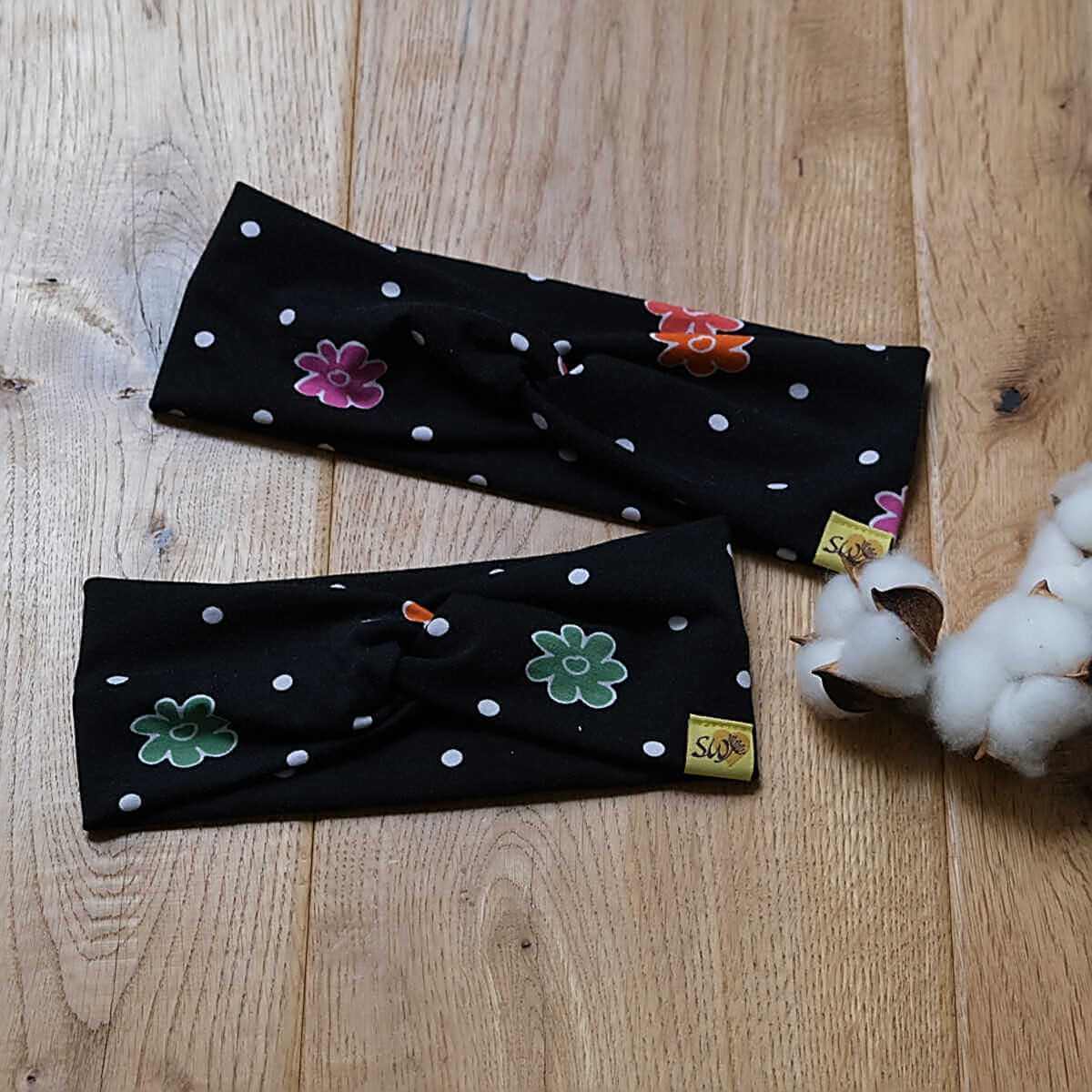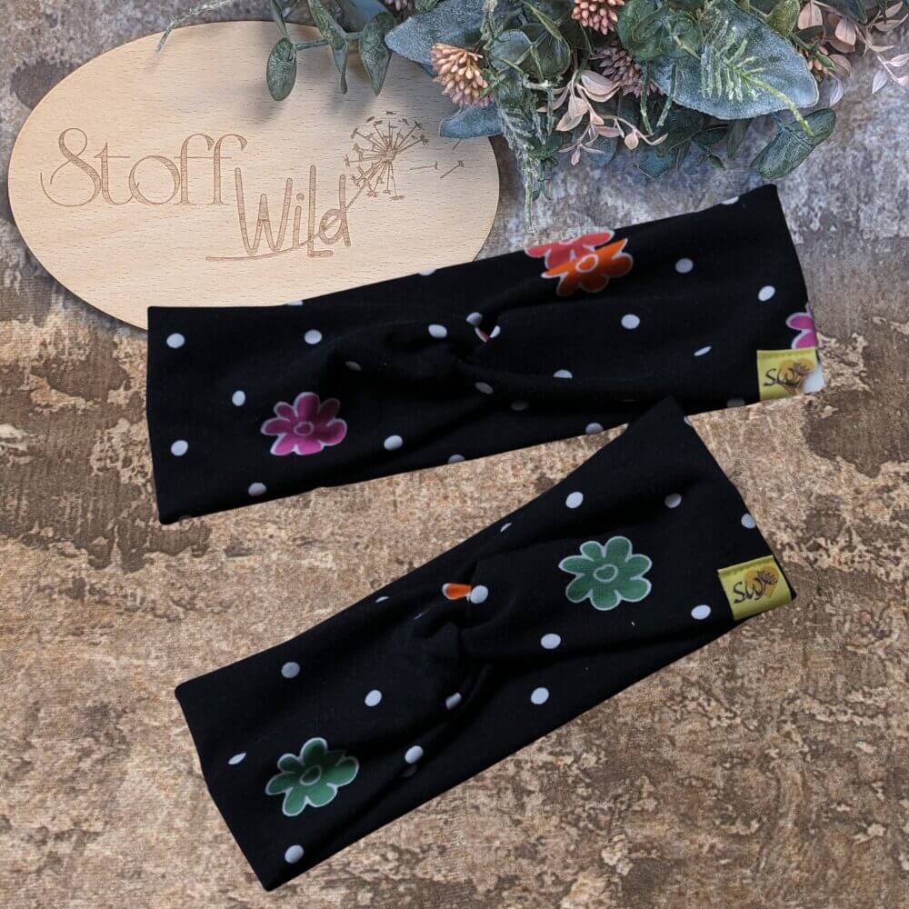Knotenhaarband „Blumen, schwarz“