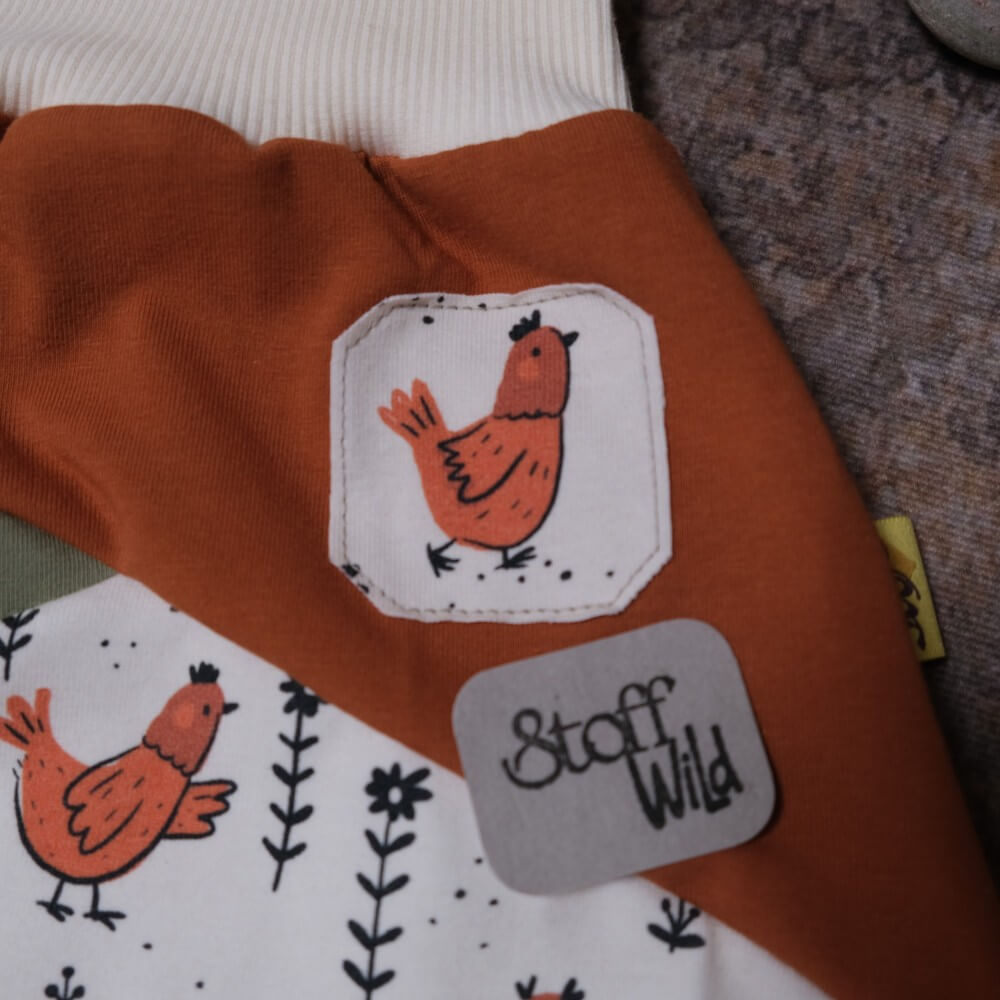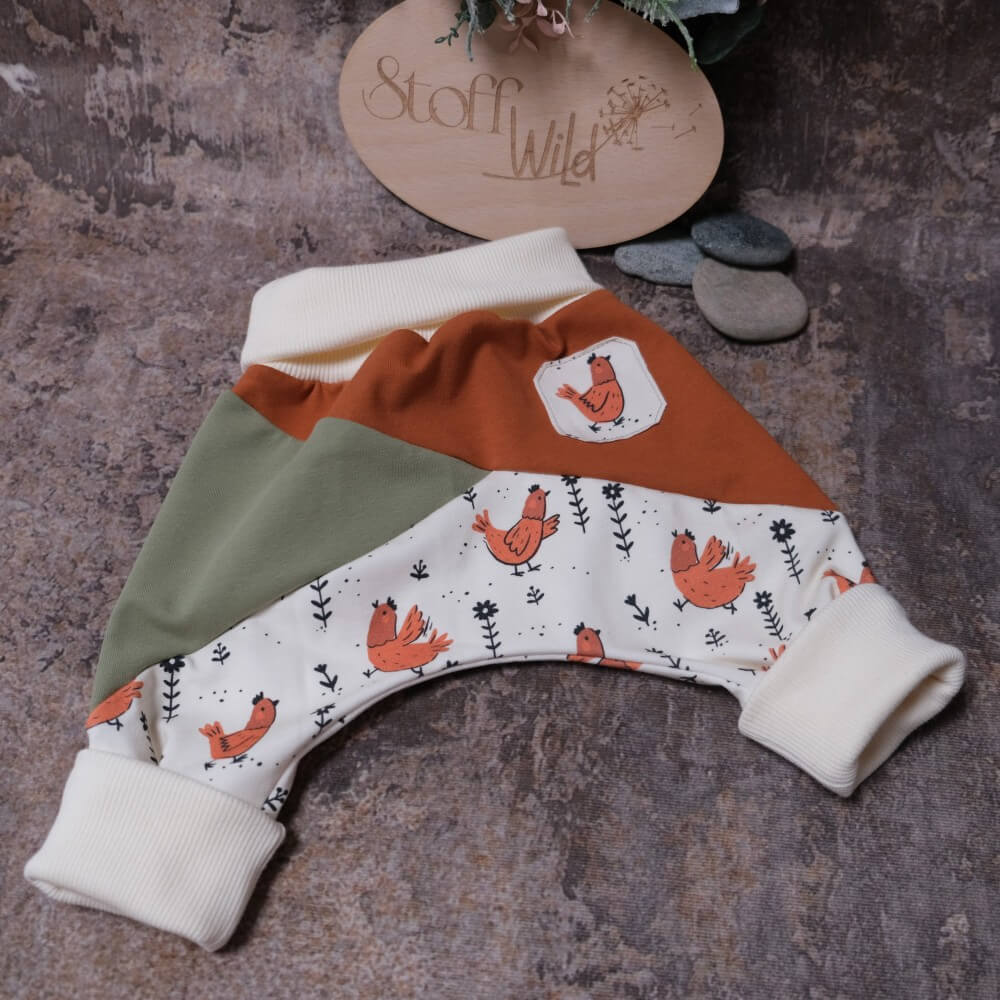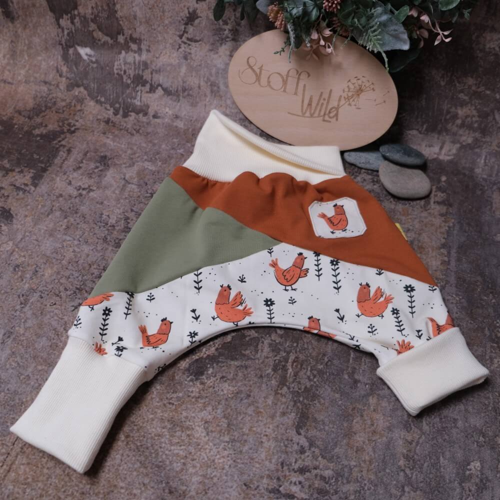Süsse Mitwachshose / Pumphose mit diversen Unterteilungen und entzückenden Hühnern