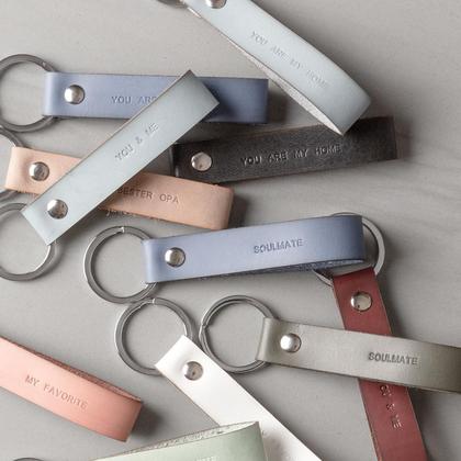 Schlüsselanhänger aus Lederrestbeständen mit Prägung. Handgemacht in Wien. Wähle deinen eigenen Spruch mit bis zu 20 Zeichen.