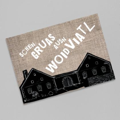 Schen Gruas ausn Woidviatl sogt ma bei uns! Hommage an die Heimat, von Hand gezeichneter Waldviertler Bauernhof
