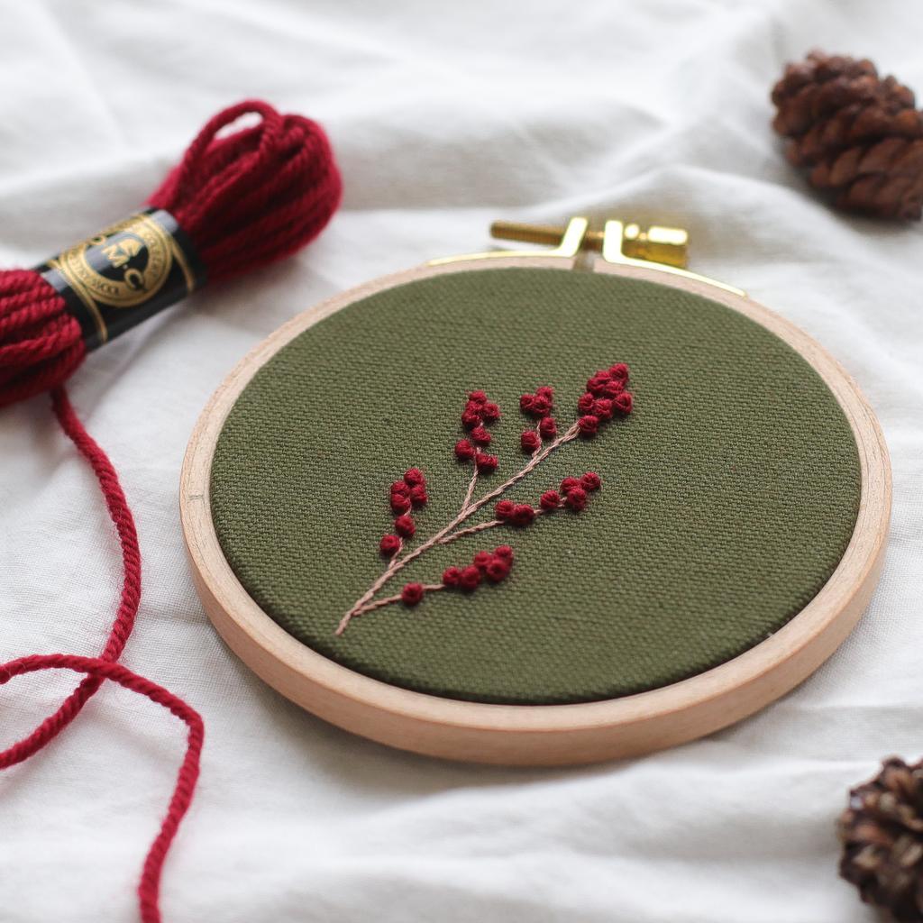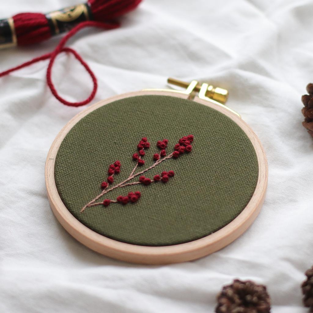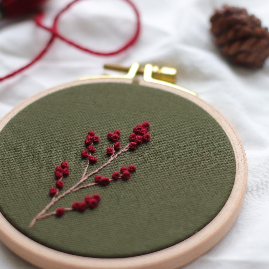 Das Stickbild „Ilexzweig“ eignet sich nicht nur als dezente Weihnachtsdekoration oder Weihnachtsgeschenk, sondern kann auch nach der Adventszeit hängen/stehen bleiben. Der schlichte Zweig mit den fluffigen Beeren ist in einem 10cm großen Buchenholzstickrahmen und wird von mir mit Qualitätsgarn handgestickt. Die Rückseite ist mit weißem Kreativpapier verkleidet. Auf Wunsch kann ich den Zweig auch auf einen anderen Stoff sticken und auch andere Garnfarben verwenden. Schreib mir gern eine Nachricht und wir besprechen die Details.