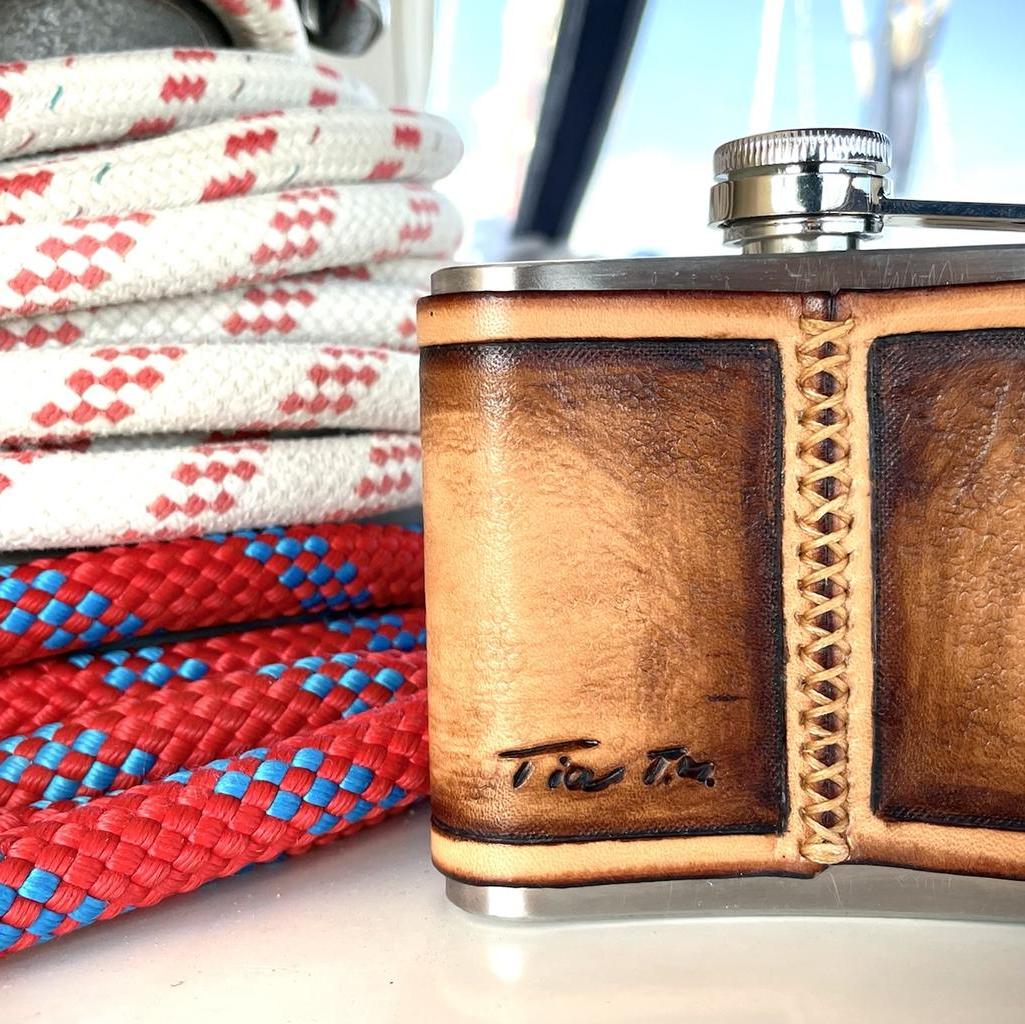 Flachmann mit Schiff Ledergravur