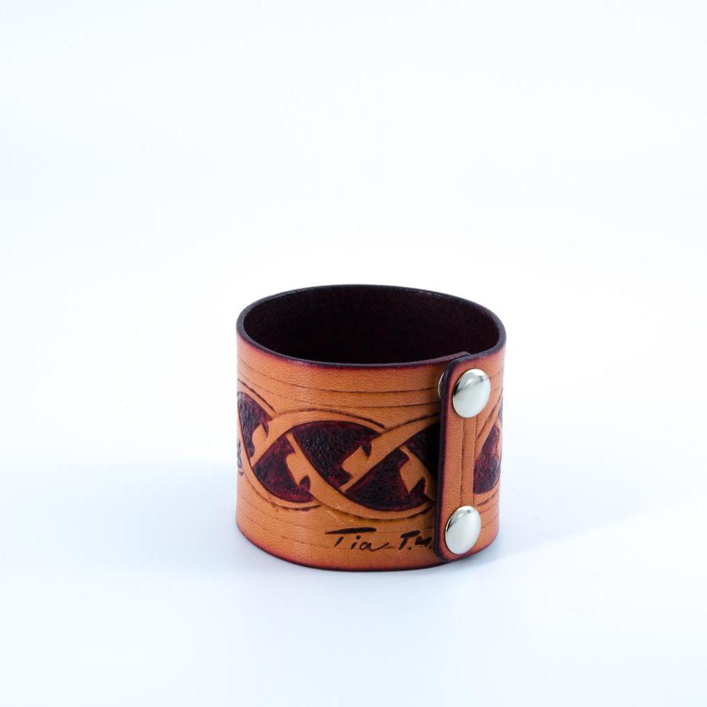 Ornament Lederarmband - pflanzlich gegerbtes chromfreies Leder - handgravur - Zierelemente - handgemachte Färbetechnik - Druckknopfverschluss - L 12 cm B 5,5 cm T 0,2 cm - handgefertigt in Wien