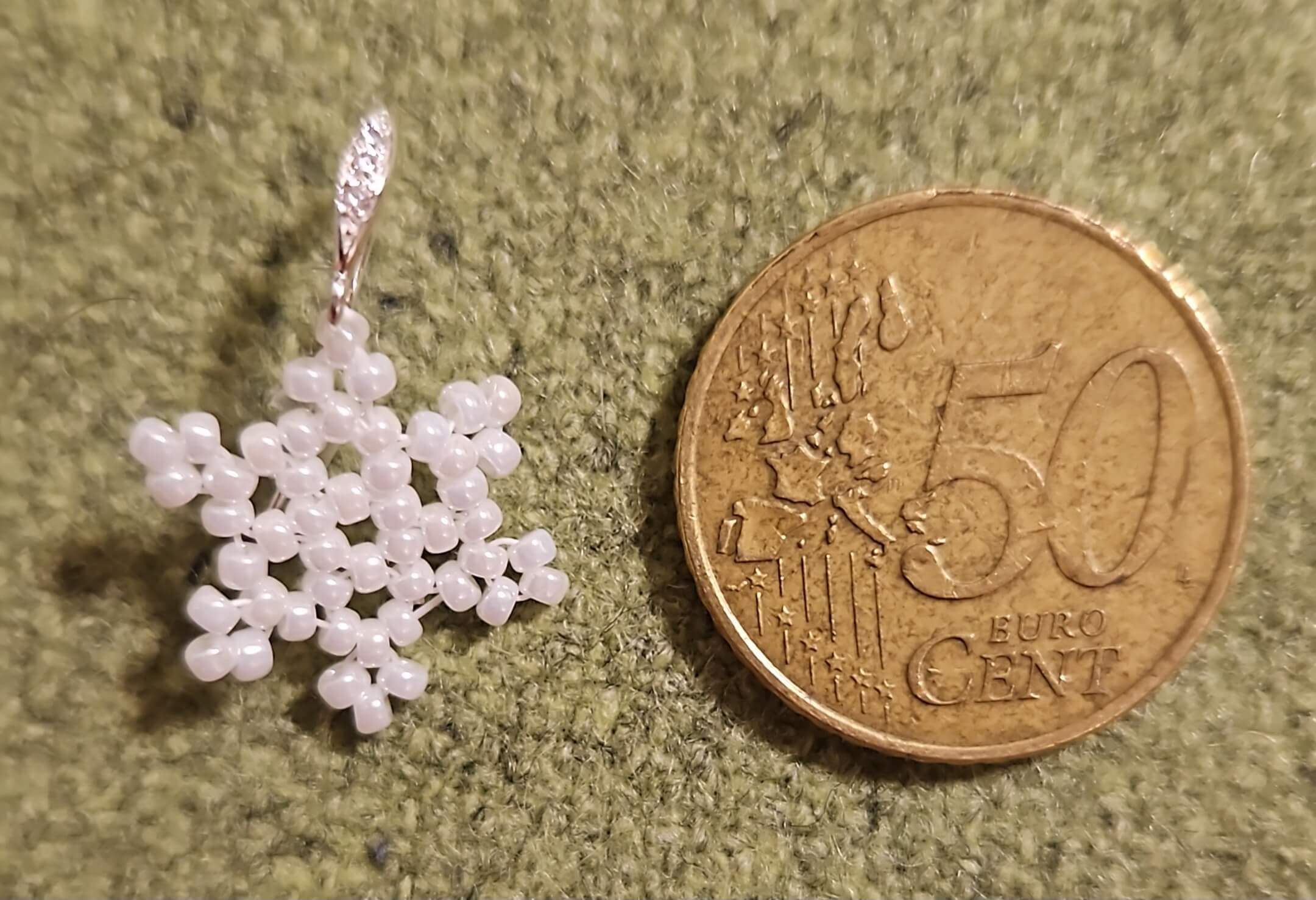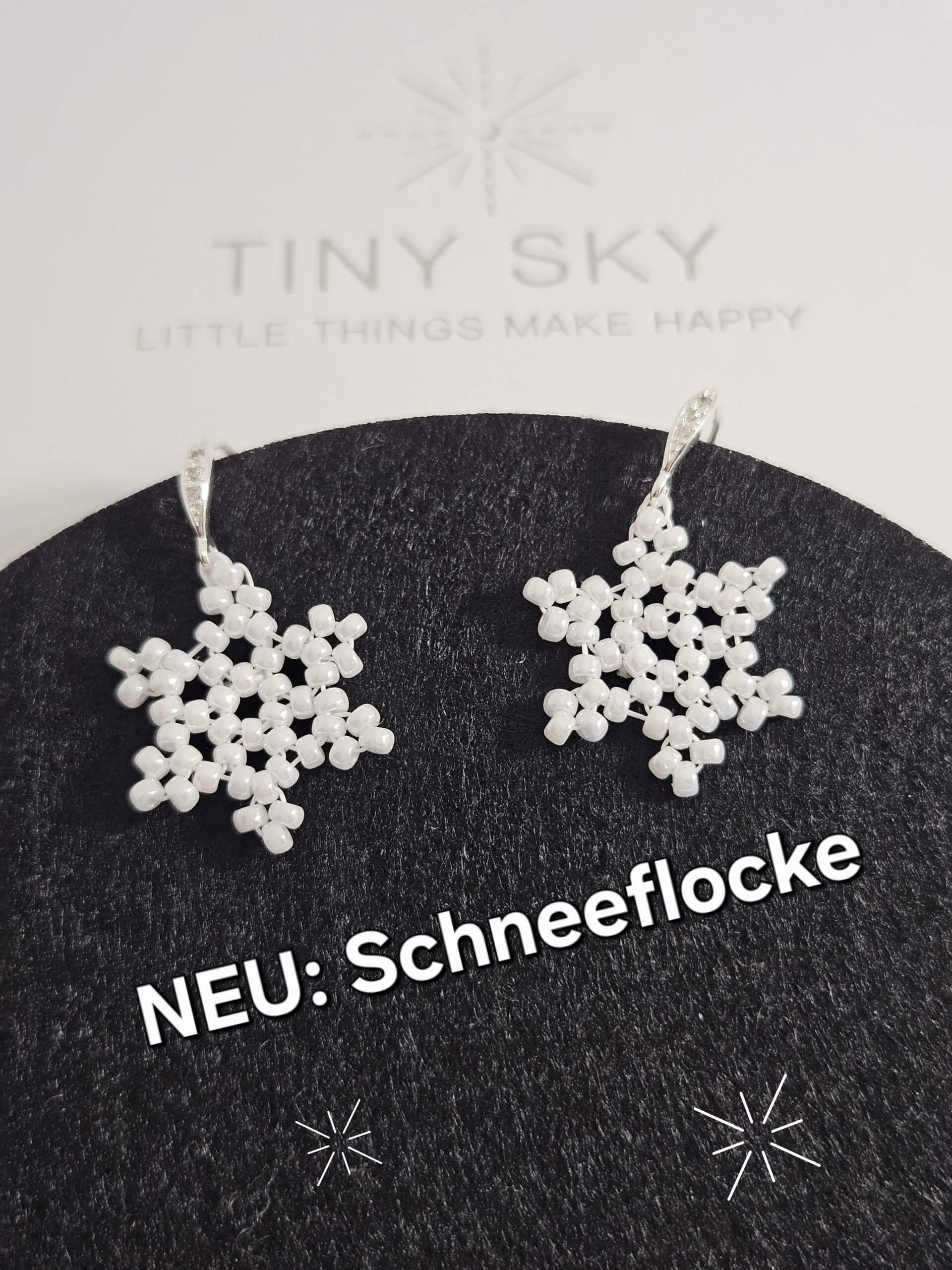 Von Hand gefädelter Perlenohrring aus Miyuki-Perlen in der Form einer Schneeflocke. Individuelle Farbwünsche möglich. Ohrhaken mit Strasssteinen besetzt in sehr hochwertiger Qualität.