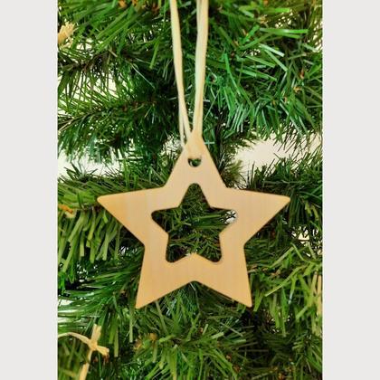 Stern aus Zirbenholz ausgeschnitten, 8 Stück im Set Lieferumfang: 8 Stück Christbaumschmuck Zirbenholz massiv. Stern ausgeschnitten. Format: B/H 8/8 cm Stärke 5 mm 8 * Bastbänder lose Kartongröße: B/T/H 31*23*3 cm (Briefkastenformat)