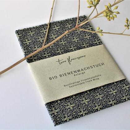 Du hast genug vom Plastikwahn? Ich auch! Meine Bienenwachstücher werden in liebevoller Handarbeit von mir im Ländle (Vorarlberg, Österreich) gefertigt, um dir eine Möglichkeit zu bieten, Plastik- oder Alufolie in deinem ganz normalen Alltag einzusparen. Das Bienenwachstuch wird mit 100% Bio Baumwolle, Bio zertifiziertem Bienenwachs aus Niederösterreich und Baumharz, ebenfalls aus Niederösterreich gefertigt. Größe: #xlarge – ca. 52 x 36 cm Anwendung: Du kannst das Bio Bienenwachstuch #xlarge dazu verwenden, Lebensmittel wie Brote, größeres Obst und Gemüse, Salate oder Reste einzupacken bzw. frischzuhalten. Und das ganz natürlich, ohne giftigen Schnickschnack. Rohes Fleisch, Fisch oder heiße Speisen sind nicht geeignet! Verpackung: Die Banderole besteht zu 40% aus Graspapier aus Brachflächen in Deutschland und auf Wunsch kannst du dein Bienenwachstuch natürlich auch “nackt” kaufen