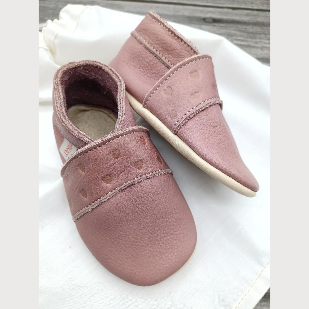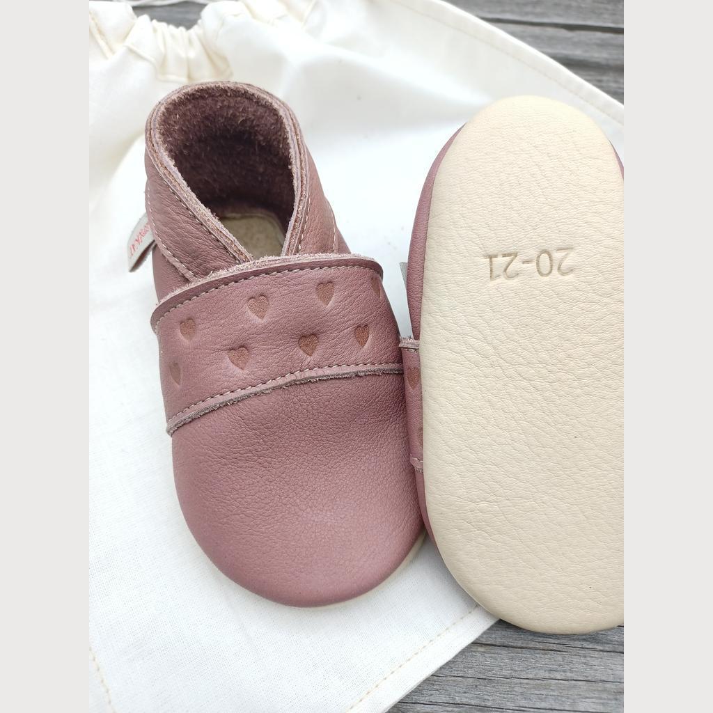Krabbelschuhe Naturleder, altrosa mit Herzen Gr 18/19