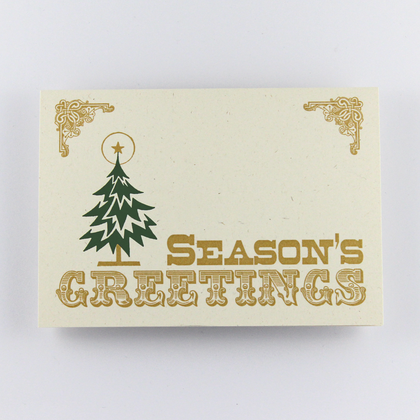 --Weihnachtskarte "Season’s Greetings"-- Klappkarte, innen unbedruckt, Rückseite: kleines Logo Mehr Weihnachtskarten und Grußkarten für alle Gelegenheiten findest du hier in unserem Shop! Suche auch nach den günstigeren Sets für 3/6/12 Karten nach Wahl. GRÖSSE: Gefaltet Din A6 (ca. 10,5 x 14,8 cm) PAPIER: italienisches Papier (285g), FSC zertifiziert, mit 80% Recyclinganteil (daher der natürliche Touch des Papiers mit sichtbaren Faserteilen) DRUCK: mit glänzendem Gold KUVERT: braunes Papier (recycelt) VERPACKUNG: Cellophanhülle (auf Wunsch ohne), in stabiler Verpackung verschickt Nicht genug Karten verfügbar? Bitte sende uns eine Anfrage.