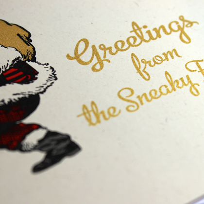 Weihnachtskarte „Sneaky Fat Man“, Weihnachtsmann Grußkarte, vintage Stil