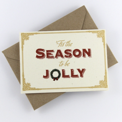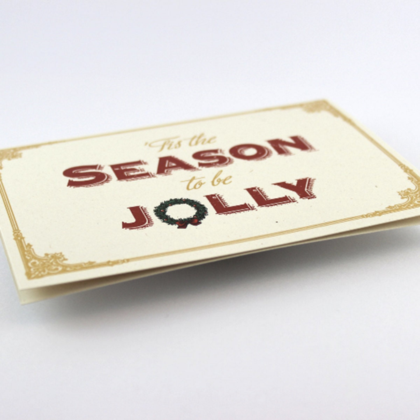 Weihnachtskarte „‚Tis the season to be jolly“ goldener Druck, vintage Stil