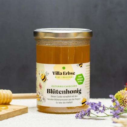 100% österreichischer Bio-Blütenhonig aus eigener Erzeugung. Unsere Bienen sammeln ihren Nektar auf verschiedenen Standorten in Wien und Umgebung. Unverfälschter Honig kristallisiert mit der Zeit, unser Blütenhonig kristallisiert gerne relativ schnell. Die meisten Menschen finden das praktisch, weil er dann nicht so schnell vom Brot läuft. Wenn dir dein Honig flüssig lieber ist, kannst du ihn im Wasserbad bei maximal 40°C schonend wieder verflüssigen.