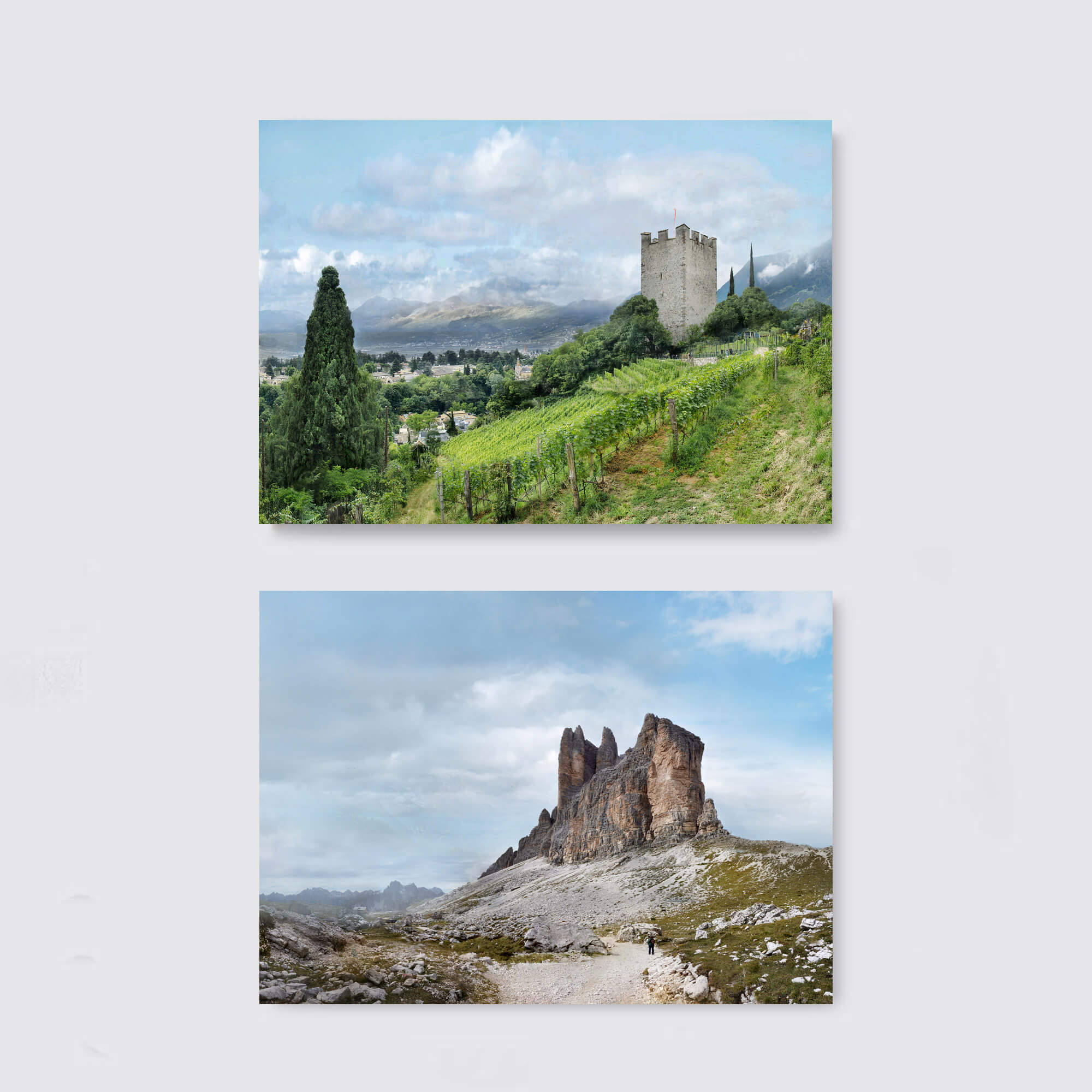 Postkarten-Set, bestehend aus 24 Karten mit 24 verschiedenen Bergmotiven. Das Set kommt sortiert im Umkarton (24 Motive mit jeweils 1 Karten). Die Postkarten sind gedruckt auf hochwertigem stabilem 300g-350g Karton. Der Innenteil ist beschreibbar. Alle Motive sind Originalfotografien, die bei Wanderungen durch Südtirol. Einzelmotive u.a.: Drei Zinnen, Pragser Wildsee, Langkofel, Monte Cristallo, Sellarunde, Antornosee, Monte Averau, Kalterer See, Sassongher, Drei Zinnen Hütte, Schloss Tirol, Pulvertrum, Meran, Burg Reifenstein, Freinfeld, Tramin, Jaufenpass, Schloss Brunnenburg und Cinque Torri.