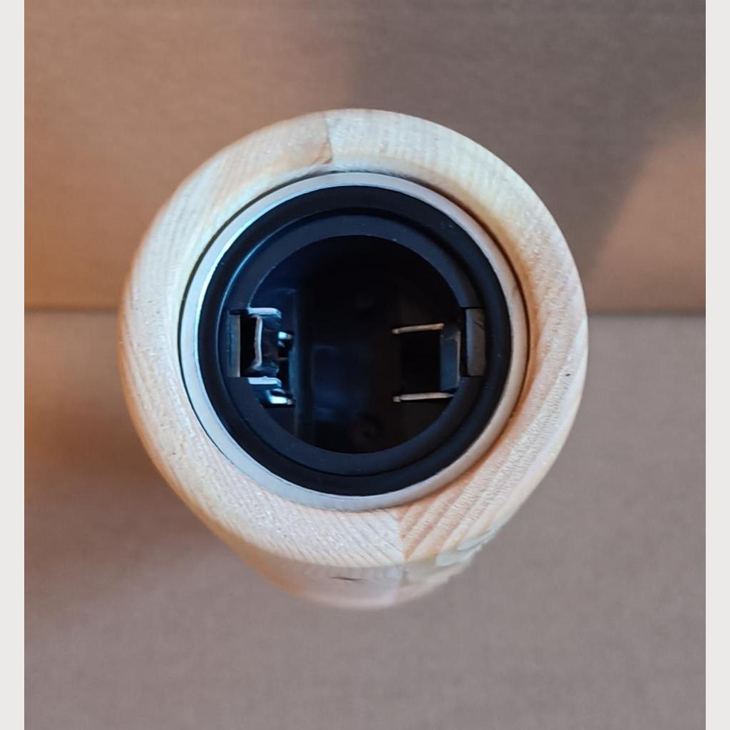 Flaschenöffner mit eigenem Mechanismus in der Form einer Bierflasche. Mit dem Öffner gerade auf die Flasche nach unten drücken und der Mechanismus hebt dann die Kapsel mit einem Plop von der Flasche. Höhe: ca. 27cm Durchmesser: ca. 7cm