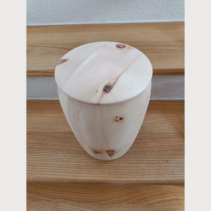 Unbehandelte Urne aus Zirbenholz geeignet für eine Aschekapsel oder Aschebeutel. Füllmenge: 5,6 Liter Höhe: 30cm DM: 21cm