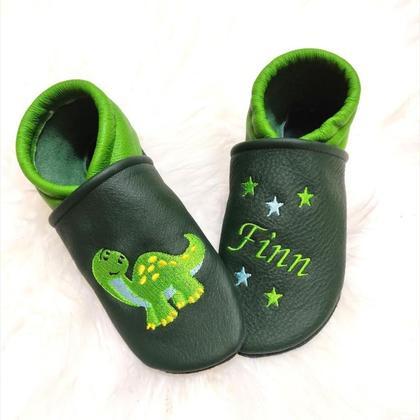 Bei Zwucki werden alle Lederpatscherl individuell nach deinem Wunsch angefertigt. Deine persönlichen Wünsche teile mir bitte per Kommentarfeld im Warenkorb mit, oder schicke mir eine Anfrage. Deine Bestellung sollte folgendes beinhalten: -) Welche Lederfarbe für die Kappe? -) Welche Lederfarbe für die Ferse? -) Welche Größe? -) Welcher Stickname soll gestickt werden? --Größe-- Größe 18/19: 11,5 cm Sohlenlänge, Größe 20/21: 12,5 cm Sohlenlänge, Größe 22/23: 14,5 cm Sohlenlänge, Größe 24/25: 16 cm Sohlenlänge, Größe 26/27: 17,5 cm Sohlenlänge, Größe 28/29: 19 cm Sohlenlänge, Größe 30/31: 20,5 cm Sohlenlänge, Größe 32/33: 21,5 cm Sohlenlänge, Größe 33/34: 23 cm Sohlenlänge --Material-- Für die Produktion der Lederpatschel verwende ich ausschließlich qualitativ hochwertiges Rinderleder, welches nach deutschen Richtlinien frei von PCP, PCB, AZI-Farbstoffen, CH2O, Quecksilber, Cadmium, Lösungsmittel und FCKW ist. --Sohle-- Die Lederpuschen werden mit einer tolle rutschhemmenden Sohle aus Veloursleder genäht. Diese wird nach einiger Zeit glatt. Mit einer Drahtbürste kannst du sie einfach wieder etwas aufrauen. --Die richtige Größe-- Die Krabbelschuhe sollen ein Geschenk zur Geburt, Taufe oder 1. Geburtstag sein? Dann empfehle ich die Größe 20/21. Diese passt in den meisten Fällen mit rund einem Jahr. Um die richtige Größe für dein Kind zu ermitteln, messe diesen bitte ab und rechne 1,5 cm dazu. Am einfachsten und genauesten funktioniert das abmessen, wenn das Kind auf einem Blatt Papier steht. Einmal im Kreis zeichnen und die Distanz von Ferse bis zum großen Zeh messen. Dazu werden 1,5cm addiert. Fusslänge + 1,5 cm = Sohlenlänge --Leder Eigenschaften-- Es ist verschleißfest und passt sich super an. Dabei behält es seine Form, noch dazu ist es atmungsaktiv und dadurch wirkt es temperaturausgleichend. Eignet sich hervorragend für Zuhause, Kindergarten und beim Turnen durch rutschhemmende Veloursohle. Es kann zur Struktur- und Farbabweichungen kommen, weil Leder ein Naturmaterial ist. Die Qualität bleibt trotzdem sehr hochwertig. Die Puschen sind nicht waschbar, bitte nur mit einem feuchten Tuch reinigen. Schnittmuster "Puschen von klimperklein (www.klimperklein.de)"