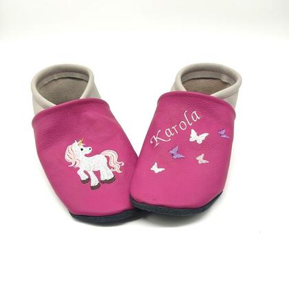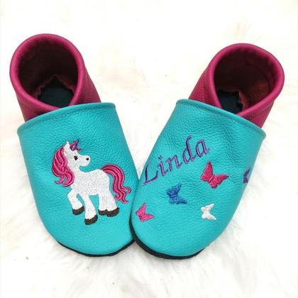 Bei Zwucki werden alle Lederpatscherl individuell nach deinem Wunsch angefertigt. Deine persönlichen Wünsche teile mir bitte per Kommentarfeld im Warenkorb mit, oder schicke mir eine Anfrage. Deine Bestellung sollte folgendes beinhalten: -) Welche Lederfarbe für die Kappe? -) Welche Lederfarbe für die Ferse? -) Welche Größe? -) Welcher Stickname soll gestickt werden? --Größe-- Größe 18/19: 11,5 cm Sohlenlänge, Größe 20/21: 12,5 cm Sohlenlänge, Größe 22/23: 14,5 cm Sohlenlänge, Größe 24/25: 16 cm Sohlenlänge, Größe 26/27: 17,5 cm Sohlenlänge, Größe 28/29: 19 cm Sohlenlänge, Größe 30/31: 20,5 cm Sohlenlänge, Größe 32/33: 21,5 cm Sohlenlänge, Größe 33/34: 23 cm Sohlenlänge --Material-- Für die Produktion der Lederpatschel verwende ich ausschließlich qualitativ hochwertiges Rinderleder, welches nach deutschen Richtlinien frei von PCP, PCB, AZI-Farbstoffen, CH2O, Quecksilber, Cadmium, Lösungsmittel und FCKW ist. --Sohle-- Die Lederpuschen werden mit einer tolle rutschhemmenden Sohle aus Veloursleder genäht. Diese wird nach einiger Zeit glatt. Mit einer Drahtbürste kannst du sie einfach wieder etwas aufrauen. --Die richtige Größe-- Die Krabbelschuhe sollen ein Geschenk zur Geburt, Taufe oder 1. Geburtstag sein? Dann empfehle ich die Größe 20/21. Diese passt in den meisten Fällen mit rund einem Jahr. Um die richtige Größe für dein Kind zu ermitteln, messe diesen bitte ab und rechne 1,5 cm dazu. Am einfachsten und genauesten funktioniert das abmessen, wenn das Kind auf einem Blatt Papier steht. Einmal im Kreis zeichnen und die Distanz von Ferse bis zum großen Zeh messen. Dazu werden 1,5cm addiert. Fusslänge + 1,5 cm = Sohlenlänge --Leder Eigenschaften-- Es ist verschleißfest und passt sich super an. Dabei behält es seine Form, noch dazu ist es atmungsaktiv und dadurch wirkt es temperaturausgleichend. Eignet sich hervorragend für Zuhause, Kindergarten und beim Turnen durch rutschhemmende Veloursohle. Es kann zur Struktur- und Farbabweichungen kommen, weil Leder ein Naturmaterial ist. Die Qualität bleibt trotzdem sehr hochwertig. Die Puschen sind nicht waschbar, bitte nur mit einem feuchten Tuch reinigen. Schnittmuster "Puschen von klimperklein (www.klimperklein.de)"