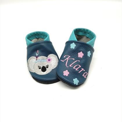 Bei Zwucki werden alle Lederpatscherl individuell nach deinem Wunsch angefertigt. Deine persönlichen Wünsche teile mir bitte per Kommentarfeld im Warenkorb mit, oder schicke mir eine Anfrage. Deine Bestellung sollte folgendes beinhalten: -) Welche Lederfarbe für die Kappe? -) Welche Lederfarbe für die Ferse? -) Welche Größe? -) Welcher Stickname soll gestickt werden? --Größe-- Größe 18/19: 11,5 cm Sohlenlänge, Größe 20/21: 12,5 cm Sohlenlänge, Größe 22/23: 14,5 cm Sohlenlänge, Größe 24/25: 16 cm Sohlenlänge, Größe 26/27: 17,5 cm Sohlenlänge, Größe 28/29: 19 cm Sohlenlänge, Größe 30/31: 20,5 cm Sohlenlänge, Größe 32/33: 21,5 cm Sohlenlänge, Größe 33/34: 23 cm Sohlenlänge --Material-- Für die Produktion der Lederpatschel verwende ich ausschließlich qualitativ hochwertiges Rinderleder, welches nach deutschen Richtlinien frei von PCP, PCB, AZI-Farbstoffen, CH2O, Quecksilber, Cadmium, Lösungsmittel und FCKW ist. --Sohle-- Die Lederpuschen werden mit einer tolle rutschhemmenden Sohle aus Veloursleder genäht. Diese wird nach einiger Zeit glatt. Mit einer Drahtbürste kannst du sie einfach wieder etwas aufrauen. --Die richtige Größe-- Die Krabbelschuhe sollen ein Geschenk zur Geburt, Taufe oder 1. Geburtstag sein? Dann empfehle ich die Größe 20/21. Diese passt in den meisten Fällen mit rund einem Jahr. Um die richtige Größe für dein Kind zu ermitteln, messe diesen bitte ab und rechne 1,5 cm dazu. Am einfachsten und genauesten funktioniert das abmessen, wenn das Kind auf einem Blatt Papier steht. Einmal im Kreis zeichnen und die Distanz von Ferse bis zum großen Zeh messen. Dazu werden 1,5cm addiert. Fusslänge + 1,5 cm = Sohlenlänge --Leder Eigenschaften-- Es ist verschleißfest und passt sich super an. Dabei behält es seine Form, noch dazu ist es atmungsaktiv und dadurch wirkt es temperaturausgleichend. Eignet sich hervorragend für Zuhause, Kindergarten und beim Turnen durch rutschhemmende Veloursohle. Es kann zur Struktur- und Farbabweichungen kommen, weil Leder ein Naturmaterial ist. Die Qualität bleibt trotzdem sehr hochwertig. Die Puschen sind nicht waschbar, bitte nur mit einem feuchten Tuch reinigen. Schnittmuster "Puschen von klimperklein (www.klimperklein.de)"