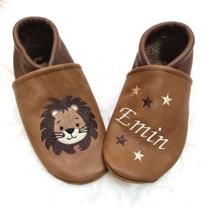 Bei Zwucki werden alle Lederpatscherl individuell nach deinem Wunsch angefertigt. Deine persönlichen Wünsche teile mir bitte per Kommentarfeld im Warenkorb mit, oder schicke mir eine Anfrage. Deine Bestellung sollte folgendes beinhalten: -) Welche Lederfarbe für die Kappe? -) Welche Lederfarbe für die Ferse? -) Welche Größe? -) Welcher Stickname soll gestickt werden? --Größe-- Größe 18/19: 11,5 cm Sohlenlänge, Größe 20/21: 12,5 cm Sohlenlänge, Größe 22/23: 14,5 cm Sohlenlänge, Größe 24/25: 16 cm Sohlenlänge, Größe 26/27: 17,5 cm Sohlenlänge, Größe 28/29: 19 cm Sohlenlänge, Größe 30/31: 20,5 cm Sohlenlänge, Größe 32/33: 21,5 cm Sohlenlänge, Größe 33/34: 23 cm Sohlenlänge --Material-- Für die Produktion der Lederpatschel verwende ich ausschließlich qualitativ hochwertiges Rinderleder, welches nach deutschen Richtlinien frei von PCP, PCB, AZI-Farbstoffen, CH2O, Quecksilber, Cadmium, Lösungsmittel und FCKW ist. --Sohle-- Die Lederpuschen werden mit einer tolle rutschhemmenden Sohle aus Veloursleder genäht. Diese wird nach einiger Zeit glatt. Mit einer Drahtbürste kannst du sie einfach wieder etwas aufrauen. --Die richtige Größe-- Die Krabbelschuhe sollen ein Geschenk zur Geburt, Taufe oder 1. Geburtstag sein? Dann empfehle ich die Größe 20/21. Diese passt in den meisten Fällen mit rund einem Jahr. Um die richtige Größe für dein Kind zu ermitteln, messe diesen bitte ab und rechne 1,5 cm dazu. Am einfachsten und genauesten funktioniert das abmessen, wenn das Kind auf einem Blatt Papier steht. Einmal im Kreis zeichnen und die Distanz von Ferse bis zum großen Zeh messen. Dazu werden 1,5cm addiert. Fusslänge + 1,5 cm = Sohlenlänge --Leder Eigenschaften-- Es ist verschleißfest und passt sich super an. Dabei behält es seine Form, noch dazu ist es atmungsaktiv und dadurch wirkt es temperaturausgleichend. Eignet sich hervorragend für Zuhause, Kindergarten und beim Turnen durch rutschhemmende Veloursohle. Es kann zur Struktur- und Farbabweichungen kommen, weil Leder ein Naturmaterial ist. Die Qualität bleibt trotzdem sehr hochwertig. Die Puschen sind nicht waschbar, bitte nur mit einem feuchten Tuch reinigen. Schnittmuster "Puschen von klimperklein (www.klimperklein.de)"